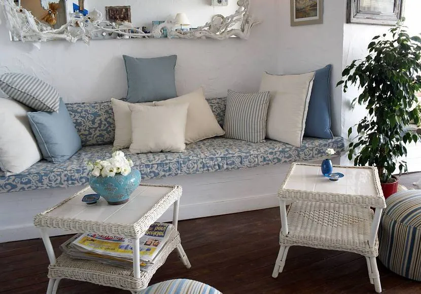 - Очень светлая пастельная цветовая гамма, все цвета в интерьере кажутся как будто выгоревшими на солнце.