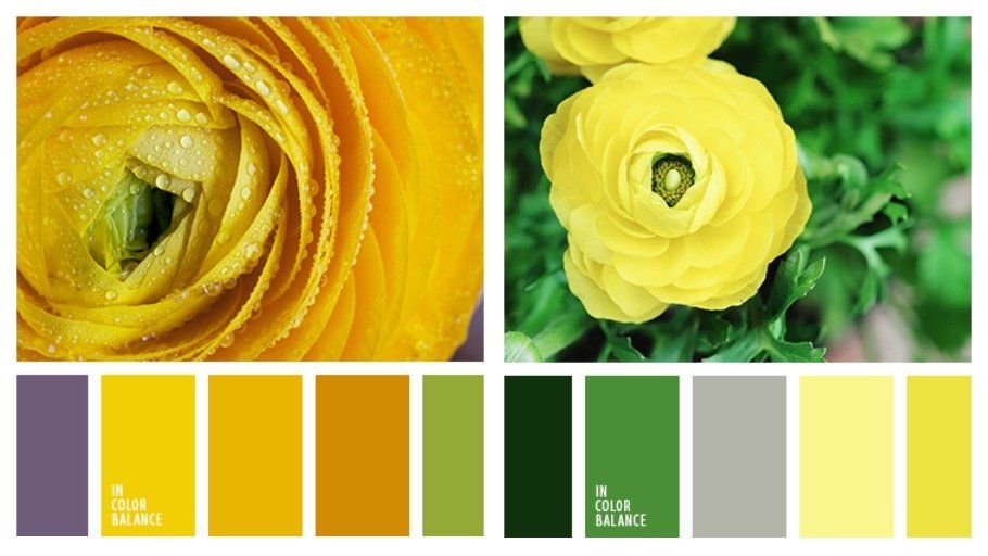 Желтый — это универсальный оттенок, который применяется в различных дизайнах. Его принято сочетать с другими тонами. Рассмотрим несколько удачных тандемов.