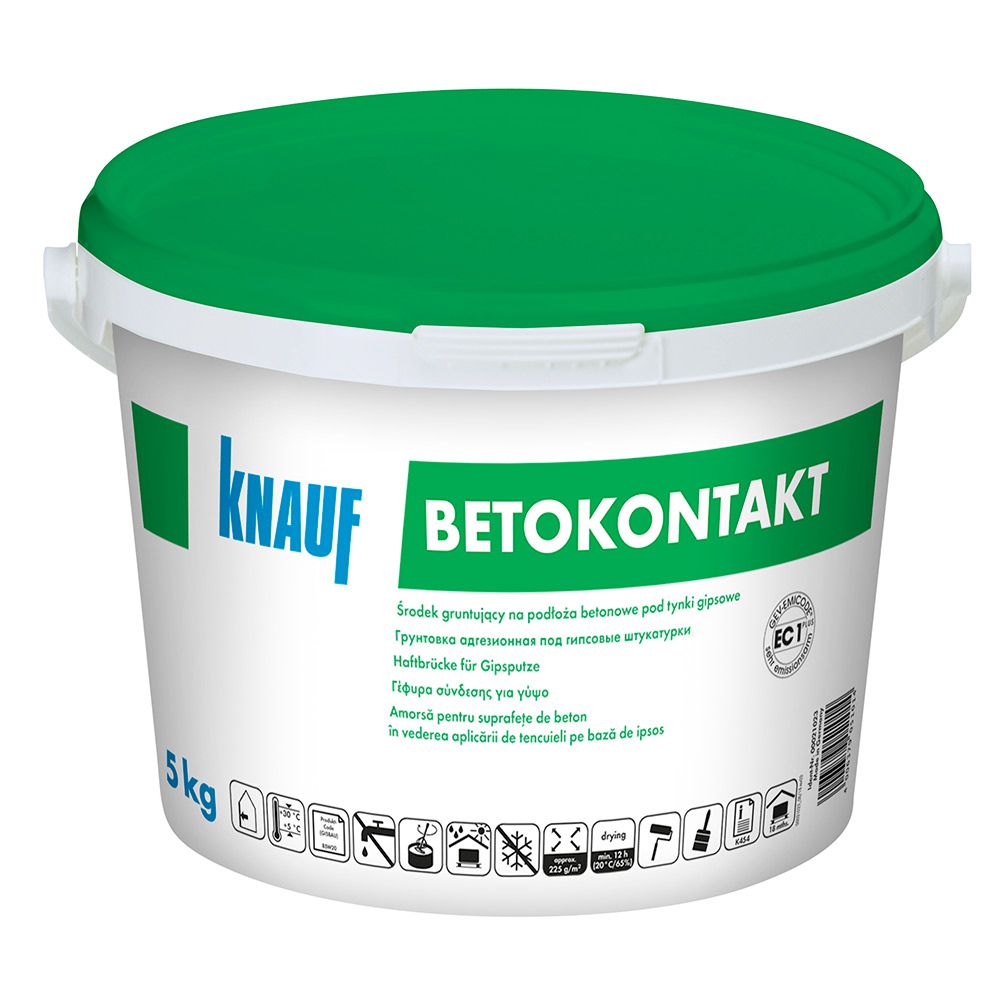 - «Бетоноконтакт» Кнауф. Отличительная особенность – использование в качестве одного из компонентов кварцевого песка. Максимально эффективна при работе с бетонными монолитными поверхностями.