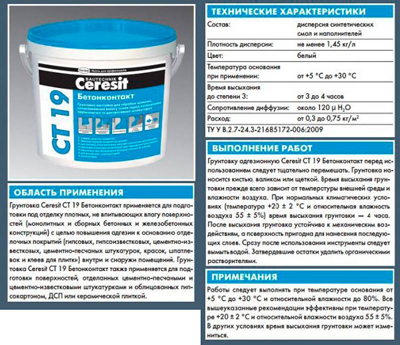 В других ситуациях использование возможно, но нецелесообразно: есть менее затратные варианты. Так, многие хозяева под плитку грунтуют «Бетоноконтактом». Эту технологию активно продвигают и производители. Но не учитывается другой фактор: сцепление плиточного клея со штукатуркой, обработанной грунтовкой глубокого проникновения, составляет 0,8-0,9 МПа, а у героя нашего материала сила на отрыв составляет всего 0,4-0,5 МПа.
