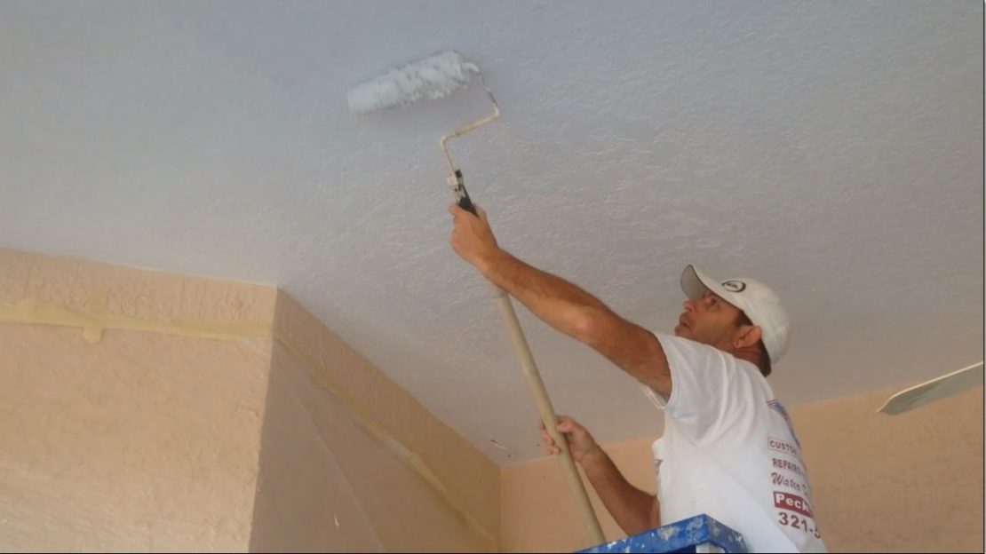 Как только второй слой полностью высохнет, приступают к покраске потолка.