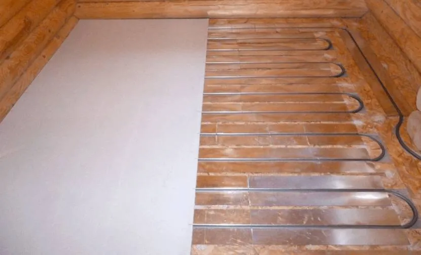 Стоит упомянуть о важном преимуществе: под гипсоволокно можно смело монтировать систему подогрева водную, электрическую или их скомбинировать. Благодаря тому, что материал достаточно плотный, при такой температуре он не разрушится и не деформируется