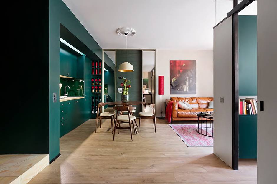 Присутствие яркого акцента «спрячет» и кухню, и что угодно