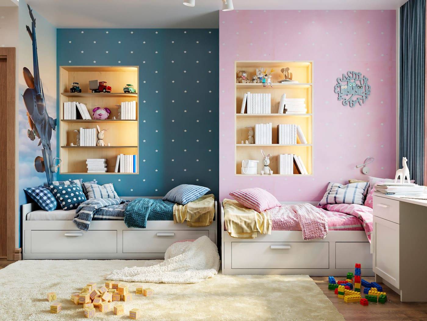 Если планируется разместить в одной комнате двух девочек, то необходимо расставить мебель так, чтобы дети не мешали друг другу отдыхать и играть.