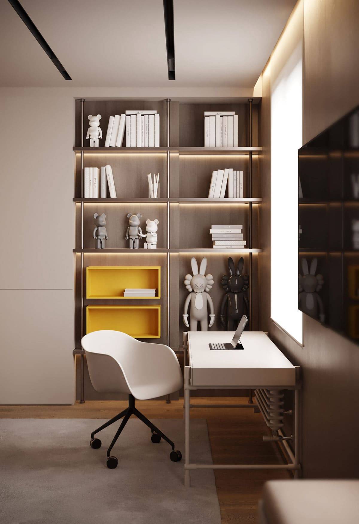Игрушки на полках заменят книги и принадлежности для учебы. Исключение составляют памятные подарки и предметы декора.