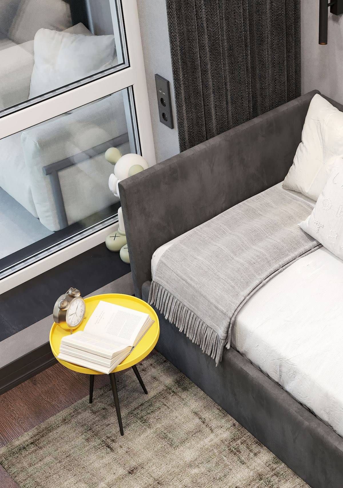 Дополнительный диванчик у окна — укромный уголок для чтения.