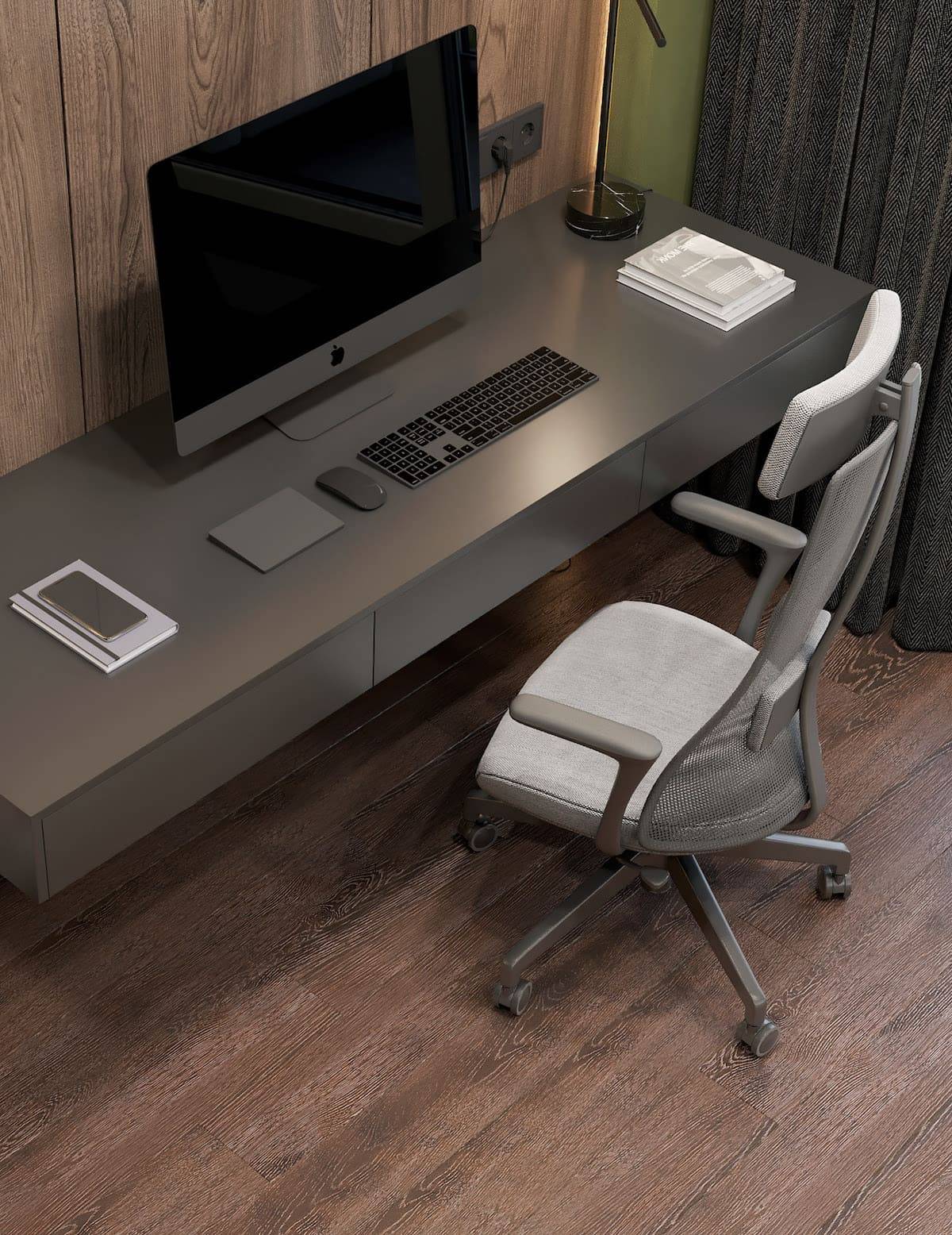 Каждая отделенная территория должна быть подсвечена соответственно её назначению. Так в рабочей зоне идеальным будет естественный источник света – окно, а для вечернего времени – настольная лампа.