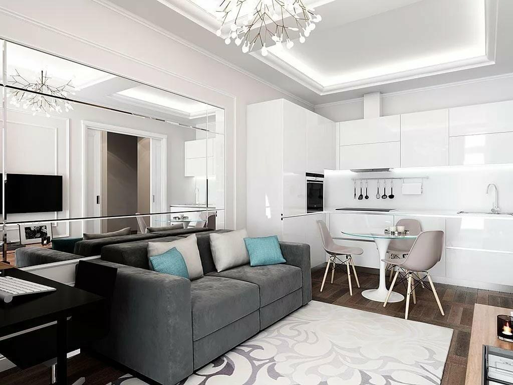 Лучшим выбором для небольшого жилья является студия. Поскольку её планировка даёт дизайнеру возможность наиболее эффективно использовать каждый сантиметр площади. И даже если человек предпочитает отделять комнаты друг от друга, всегда можно использовать перегородки.