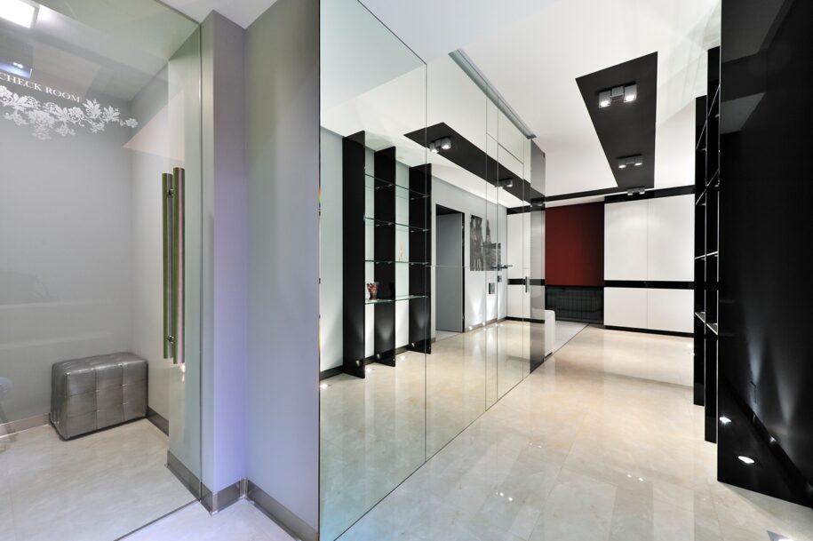 Тогда часть помещения у входной двери будет легче преобразовать в более просторную комнату. Здесь можно применить все методы визуального расширения прихожей, а шкафы для сезонной одежды останутся за ее пределами. Вдоль узкого коридора дизайнеры рекомендуют оформить гардеробную в виде встроенных шкафов за раздвижными дверцами. Часть одежды можно оставлять на вешалке за входной дверью, там же ставить обувь на многоуровневую полку, если есть такое место.