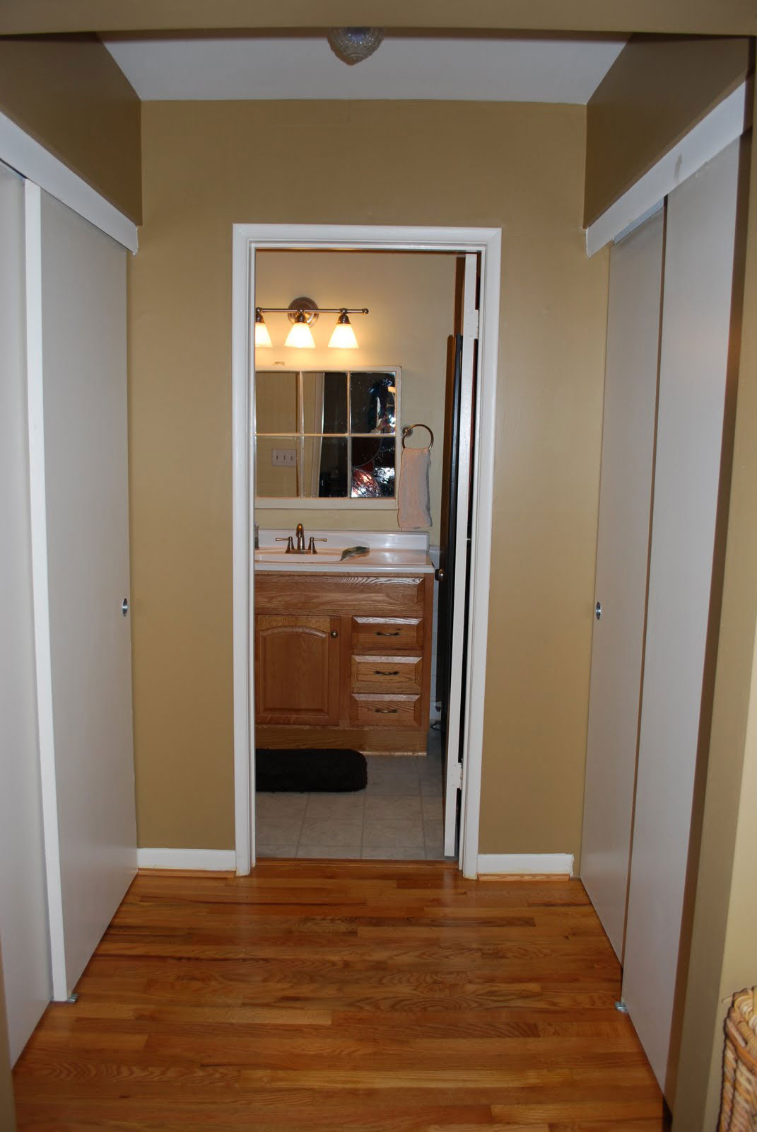 Дополнительно можно задействовать коридор, установив невысокий комод с зеркалом.