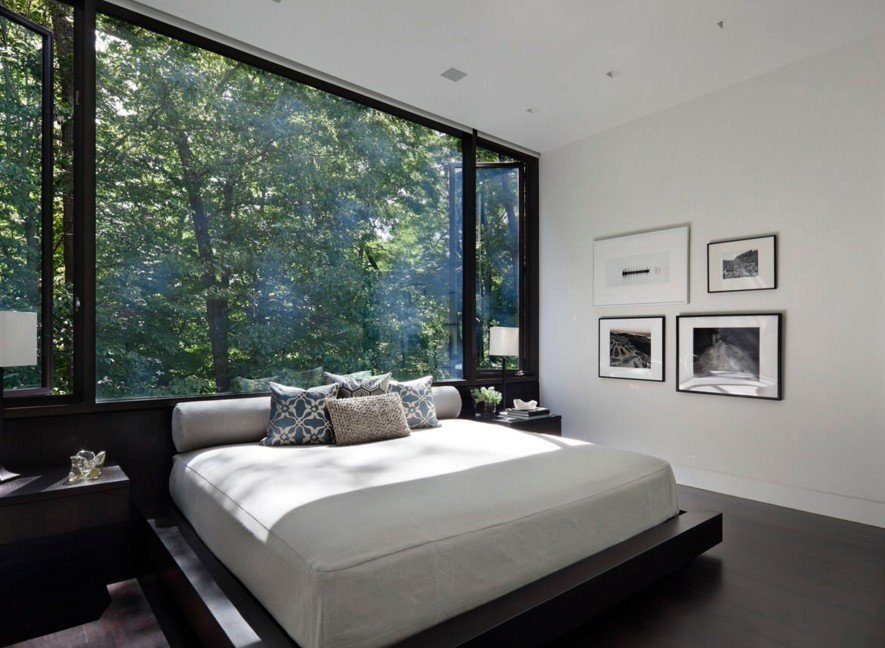 При большой загруженности в повседневной жизни, место отдыха должно максимально способствовать расслаблению и отдыху. В этом случае спальня в стиле минимализм является лучшим вариантом. Минимальное количество функциональной мебели, серо-черные цвета с ярким акцентом не загружают пространство и делают его комфортным.