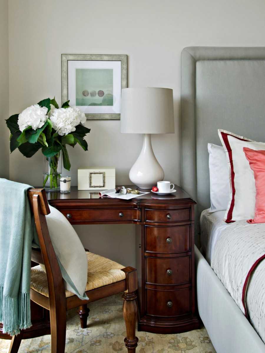 Количество предметов мебели в спальне должно быть минимальным. Это сохраняет больше пространства, делает помещение наполненным светом и воздухом.
