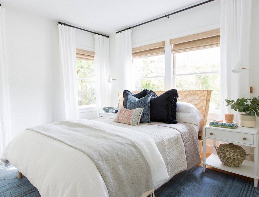 Чтобы создать суперактуальный скандинавский дизайн спальни 2023 дизайнеры рекомендуют добавить в белый интерьер пару акцентов цвета морской волны.