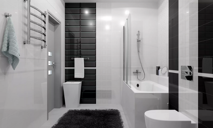 - Половинчатые решения. Если выбор остановился на яркой и интересной идее, следует идти до конца. Например, если выбрана черно-красная палитра для ванной, не стоит пытаться заменить алый цвет бордовым или винным оттенком. Стремление к умеренности лучше реализовать, выбрав нейтральную гамму. Любой оттенок можно обыграть эффектно, но контраста, используя полумеры, не достичь.