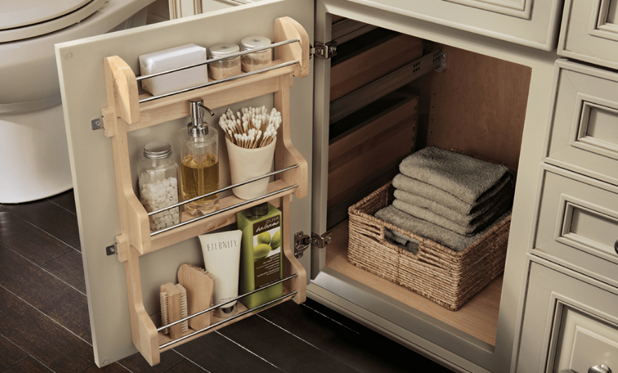 Нужно предусмотреть закрытые места для хранения, т. к. загромождать маленькую площадь бытовыми предметами нерационально.