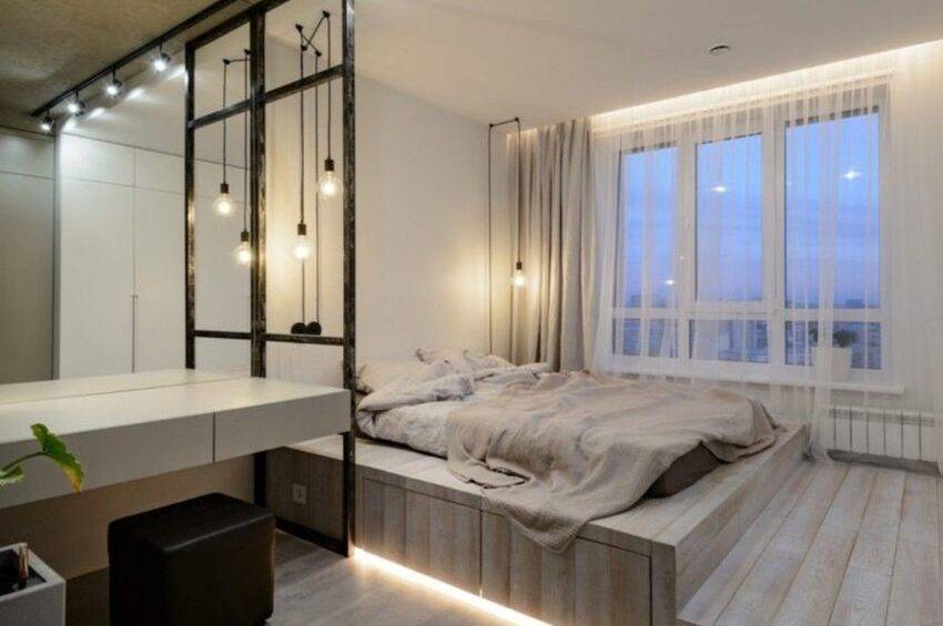 Имея в распоряжении всего одну комнату, можно превратить ее сразу в несколько разных комнат, главное правильно зонировать пространство.