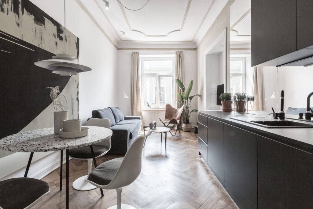 Общение во время приготовления еды — это новая тенденция в интерьере, которая находит свои творческие и стильные решения. Такое распределение жилой площади также очень полезно для молодых семей с маленькими детьми, позволяя им присматривать за детьми во время приготовления еды.
