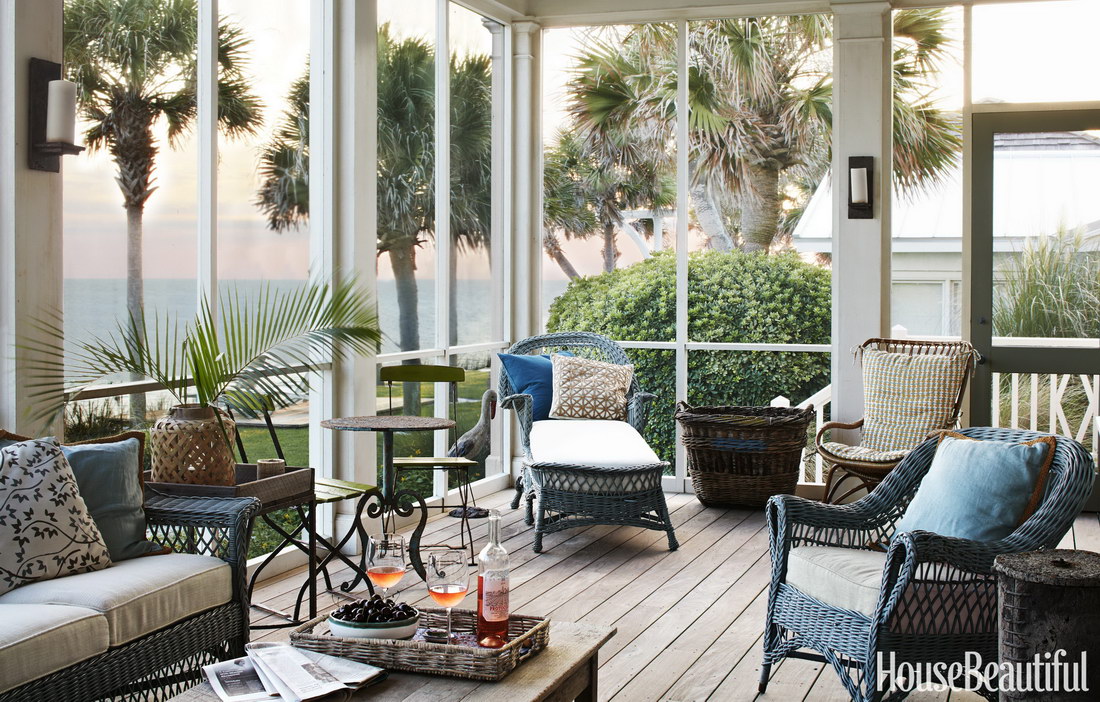 Для оформления интерьера пространства рекомендовано отдать предпочтение пастельным спокойным оттенкам, небольшим ярким компонентам, например, подушки и ковры насыщенного цвета. Такая зона на дачи станет прекрасным поводом приехать сюда в прохладную погоду, насладиться горячими напитками под садовыми осенними листьями.