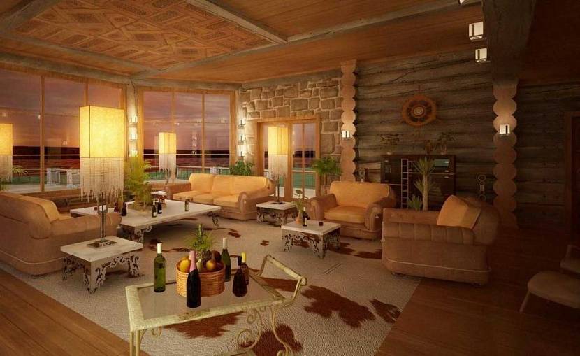 Дизайн гостиной в деревянном доме