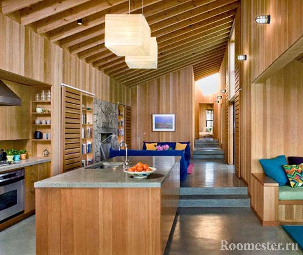 - потолочные несущие балки не стоит прятать за подвесным потолком — они придадут всему интерьеру уютную атмосферу;