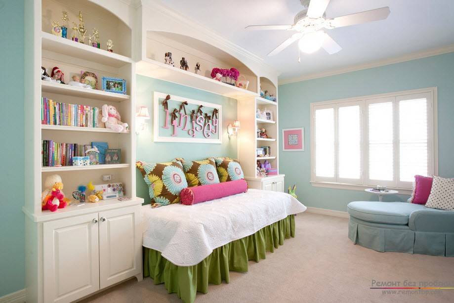 Важной частью жизни остаются игрушки и любимые персонажи. Соответственно, при оформлении комнаты нужно учитывать эти моменты