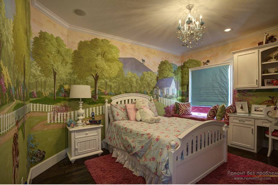 Красивая детская комната с большой кроватью и декоромИсточник dizainiya.ru