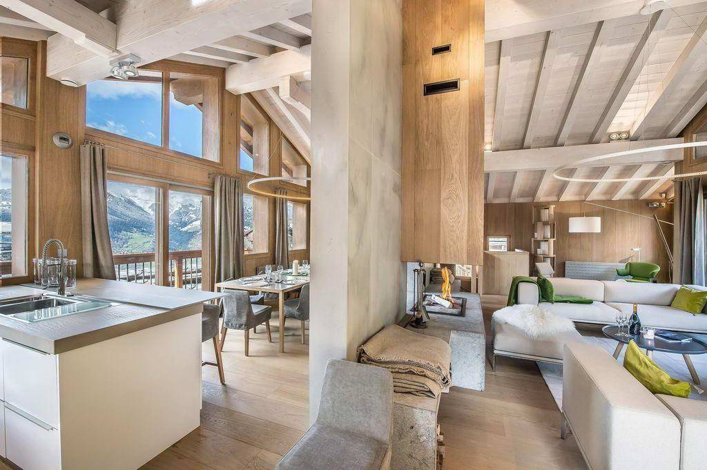Натуральное дерево и соответствующее освещение способны создать безупречный интерьер загородного дома