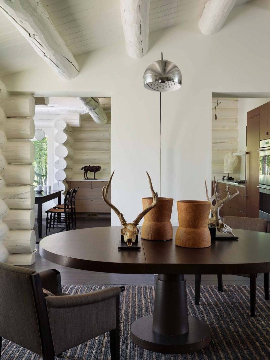 - Обширный эстетический потенциал. Оцилиндрованные бревна хорошо работают как элемент самых разных стилей. От этнических, традиционных, до минималистичных современных течений. Бревна задают стенам здания определенный ритм, графичность; являются хорошей основой для многих интересных интерьеров и фасадных решений.