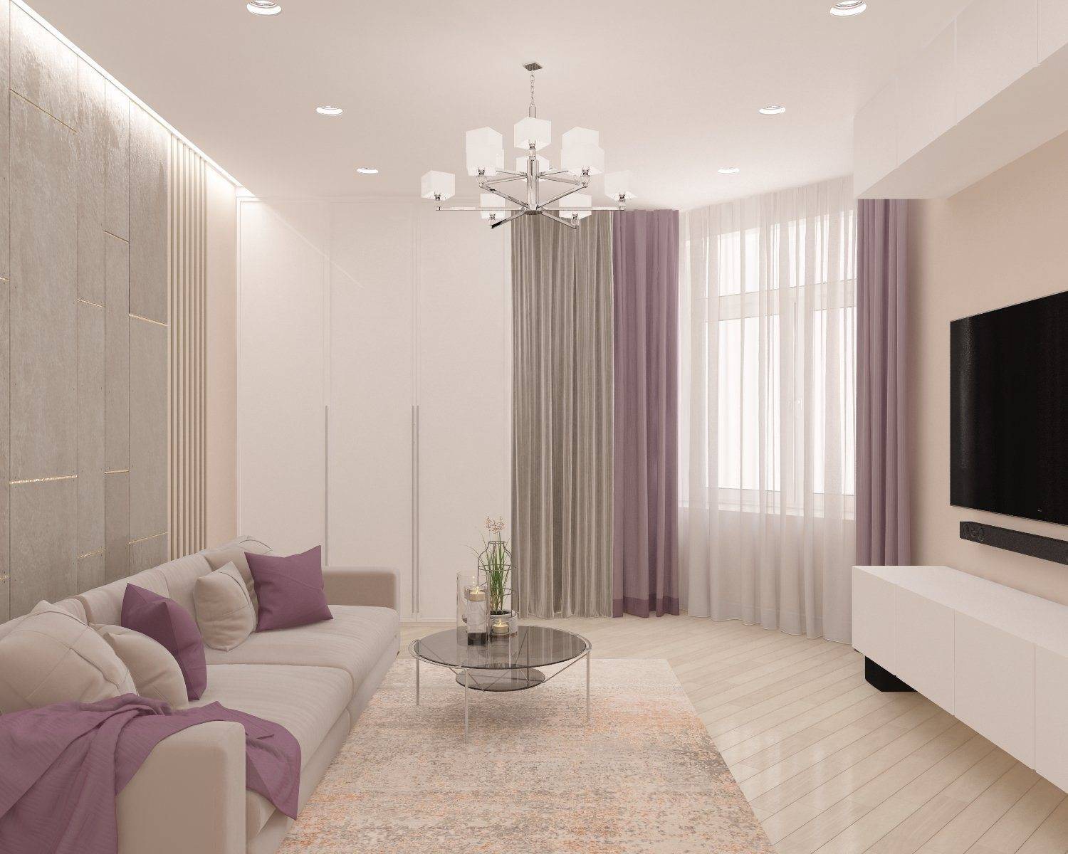 Модный дизайн гостиной в светлых тонах