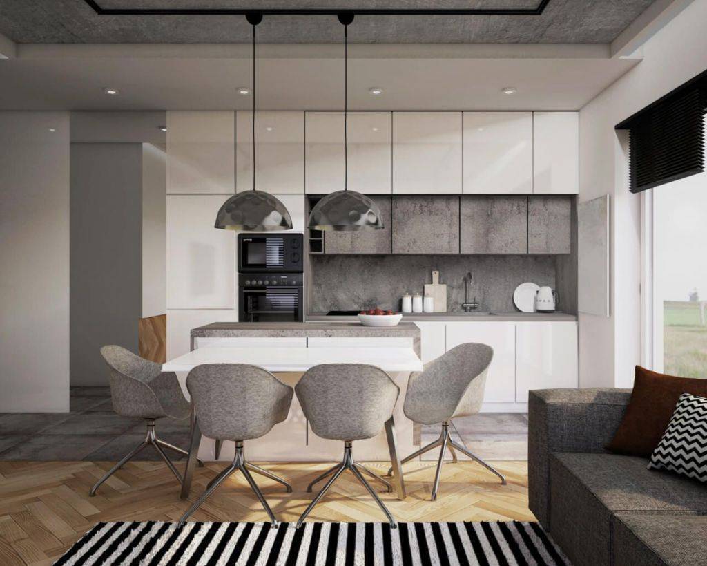 Минималистская серо-белая кухня — это та, в которой такие материалы, как: