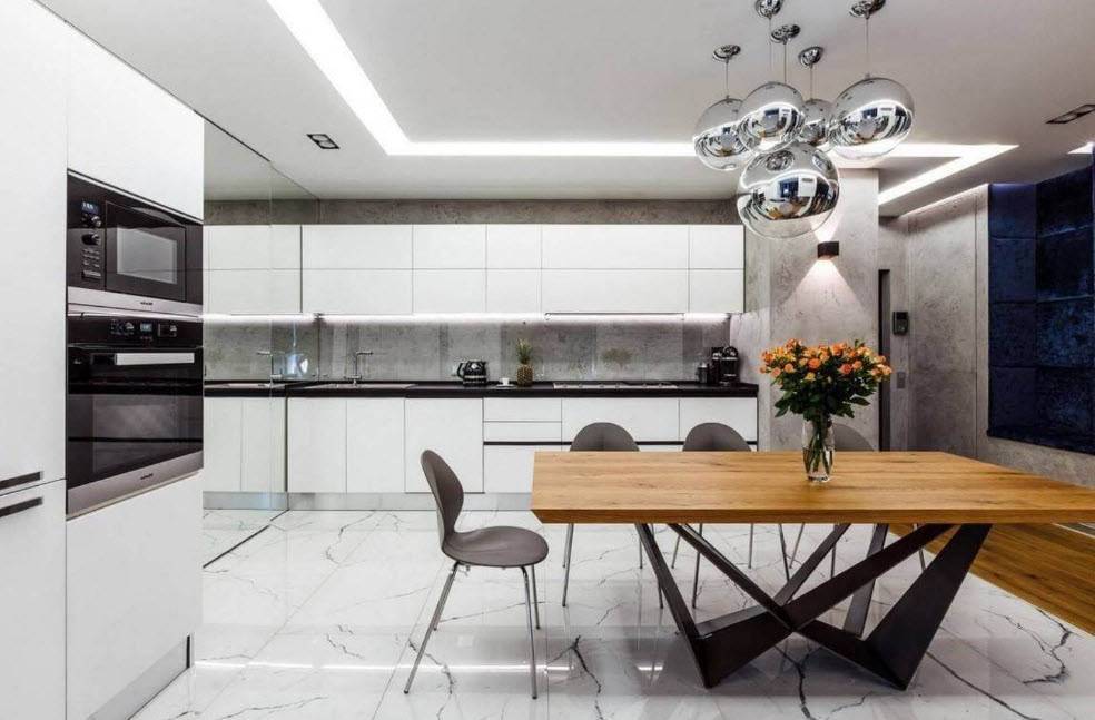 Ремонт кухни в стиле хай-тек: отделочные материалы