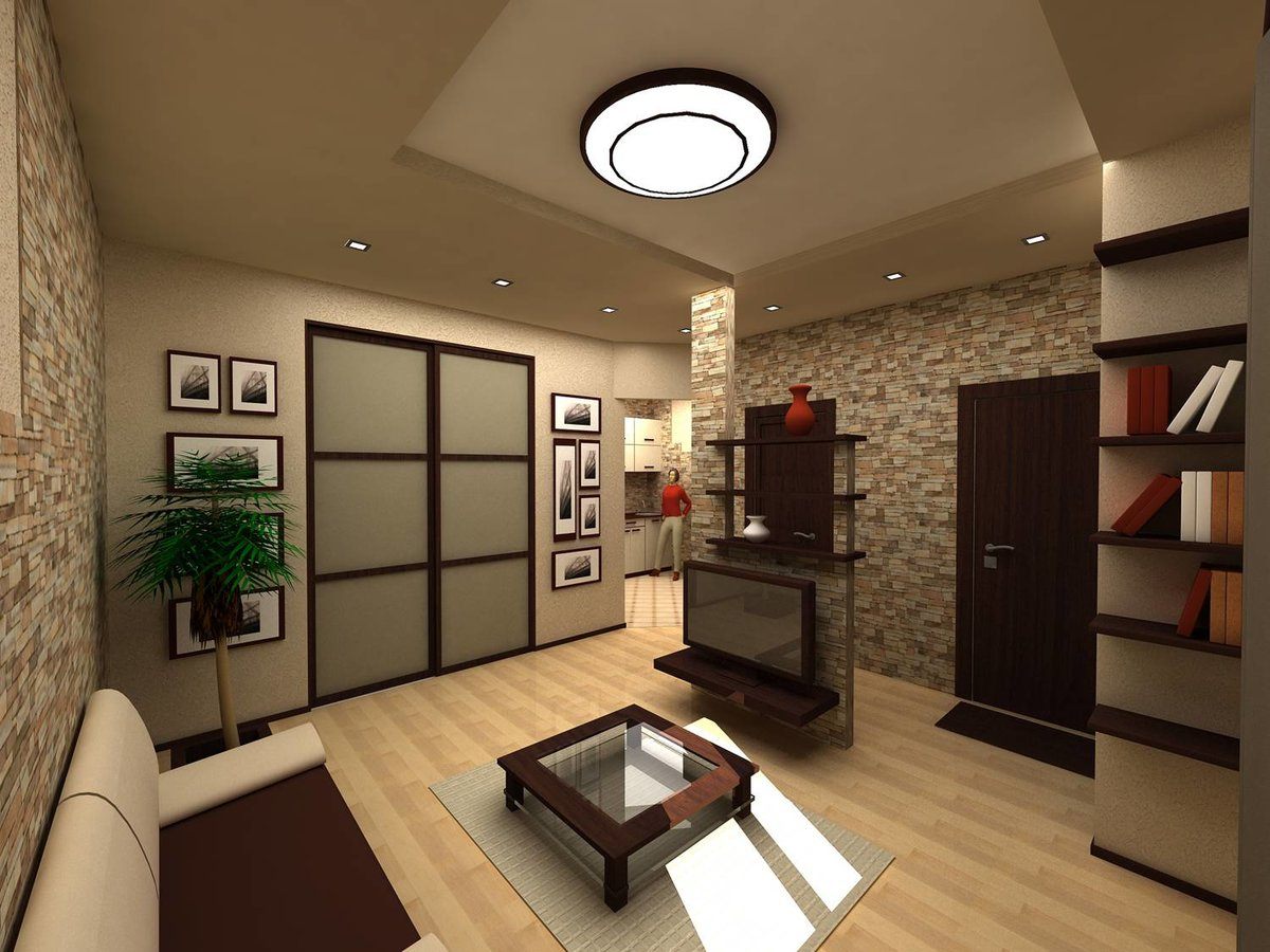С помощью разных цветов или орнаментов можно легко разделить гостиную на зоны. Фотообои на одной из стен не только станут ярким акцентом интерьера гостиной, но и позволят чётко выделить конкретную зону. Варианты отделки стен в интерьере маленькой гостиной в квартире можно увидеть на фото далее.