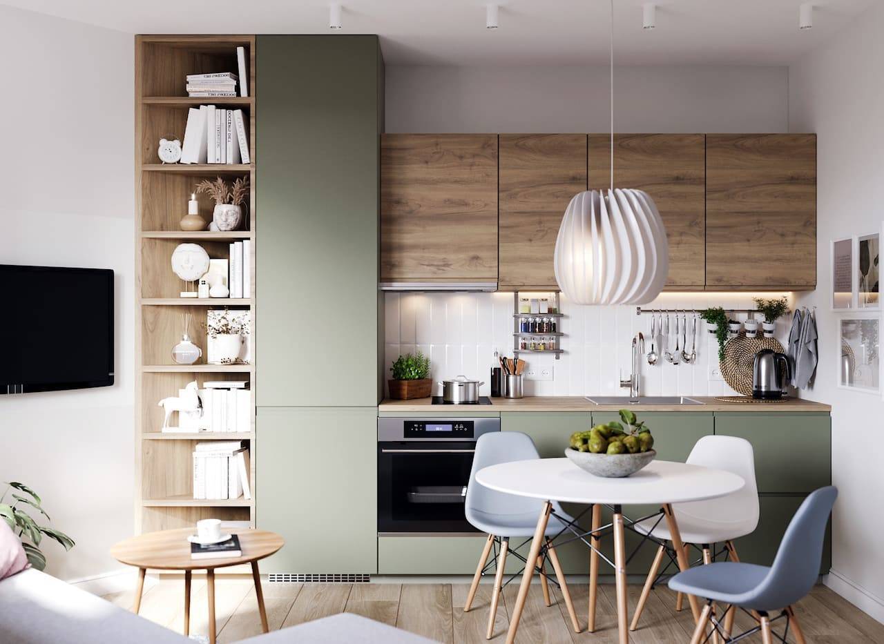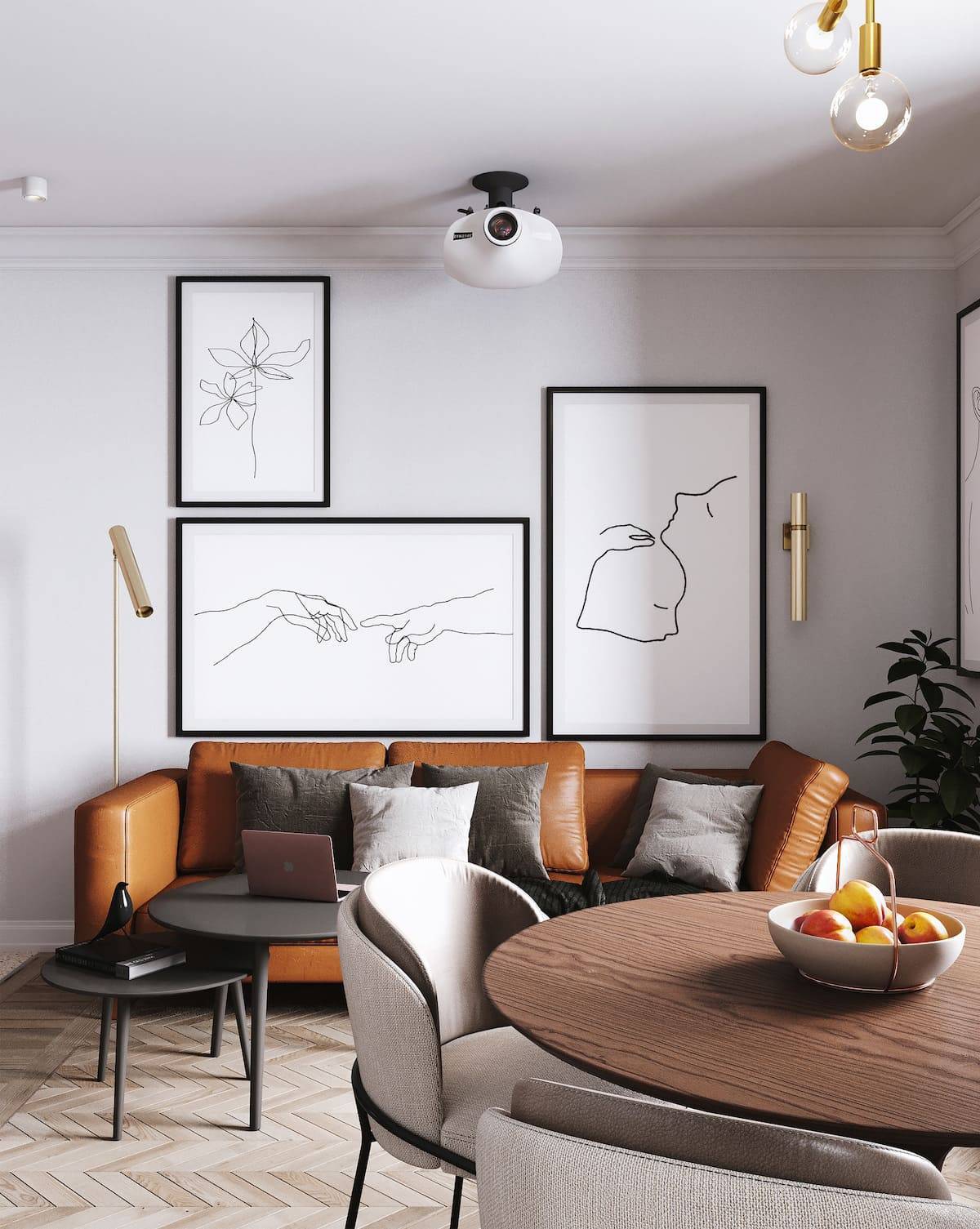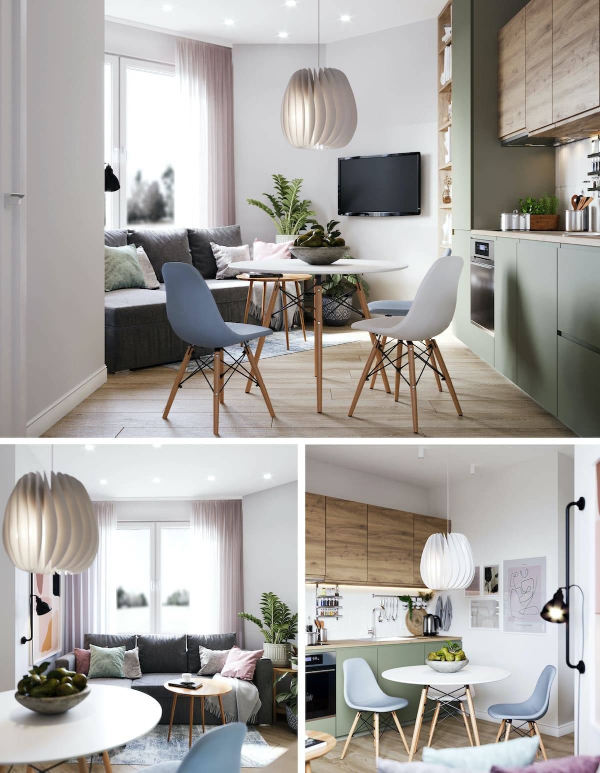 Скандинавский — интерьер с минимальным количеством деталей в светлых тонах с мебелью из натуральных материалов.