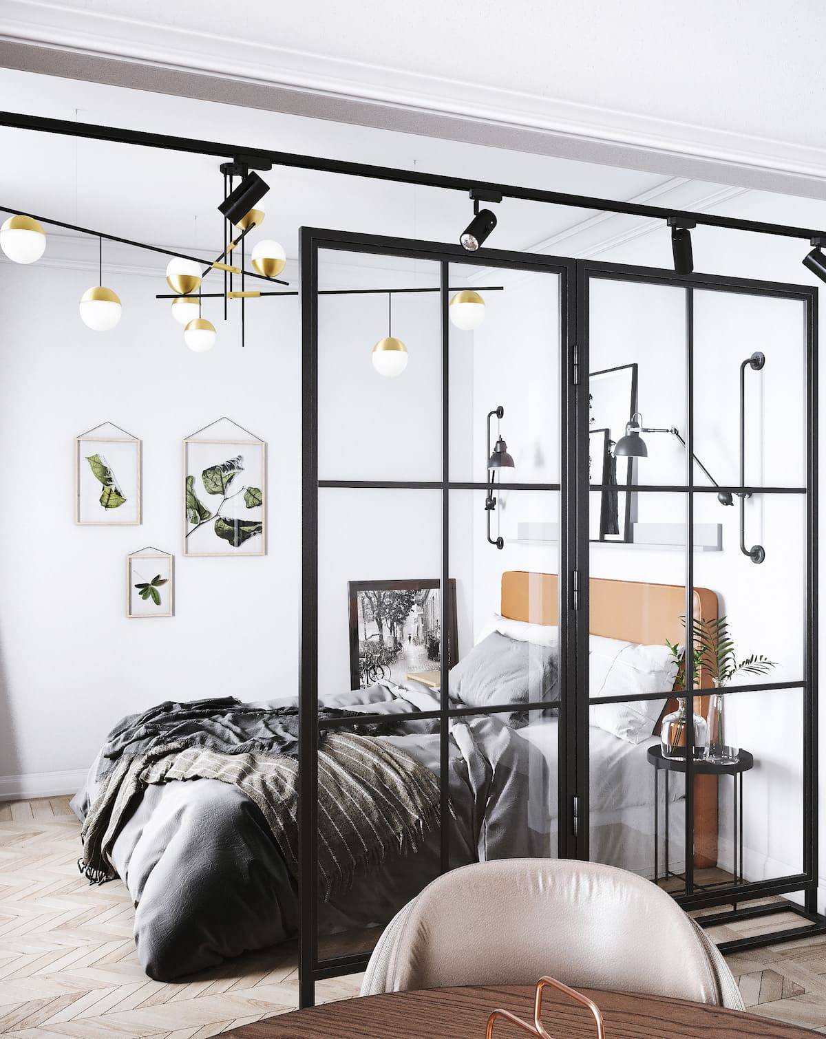 Европейский — легкий и свободный интерьер, внутреннее пространство помещения разделено на зоны прозрачными перегородками.