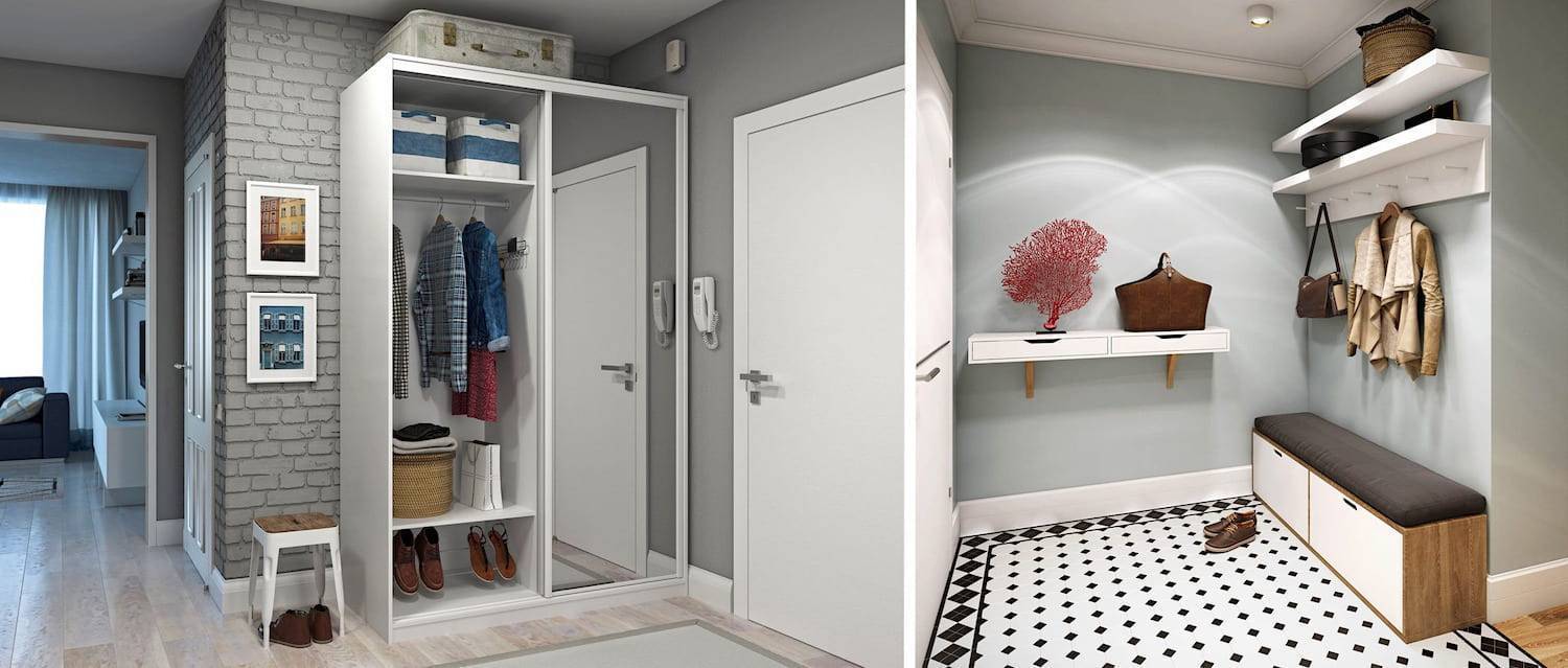 Во-первых, невозможно установить любой шкаф в маленькой прихожей, в большинстве случаев требуется индивидуальное изготовление того же шкафа-купе либо оформления встроенных ниш.