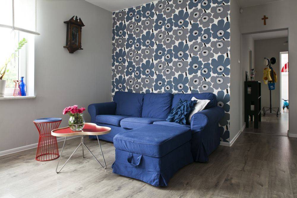 - «Цветочные» обои хороши и в сочетании с однотонными покрытиями.