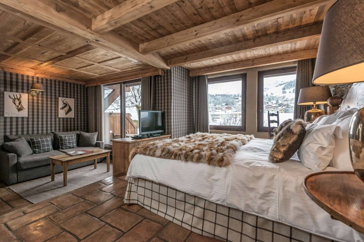 Просторная спальня в стиле шале с панорамными окнами и выходом к террасе Источник rehouz.info