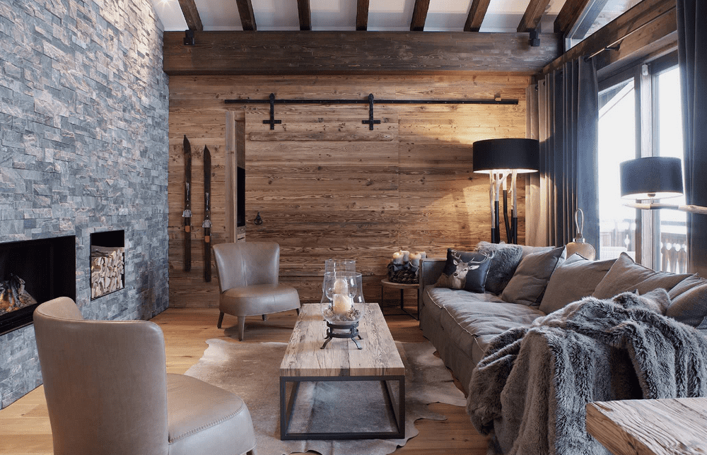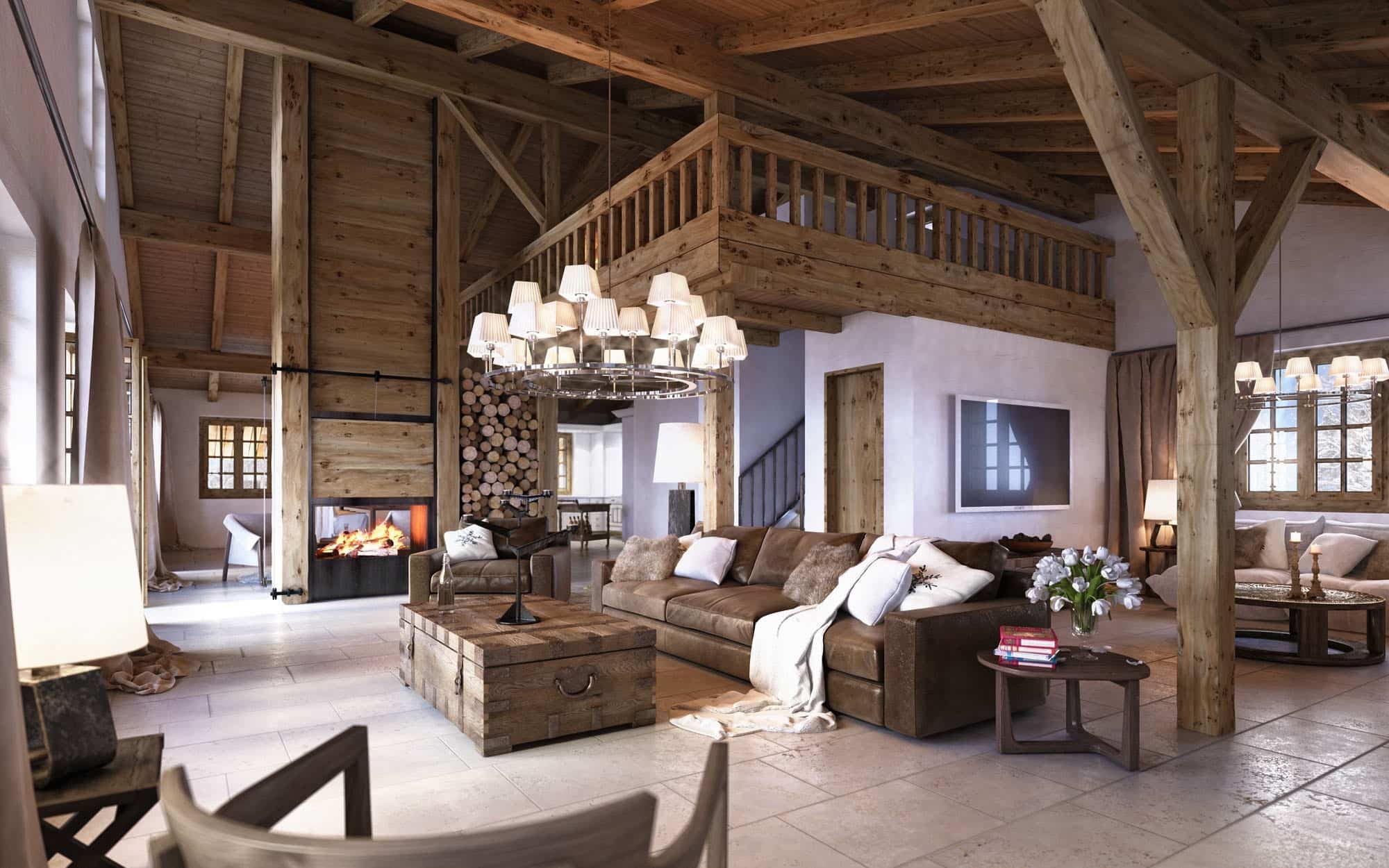 Дизайн интерьера в стиле шале с минимальным набором мебели
