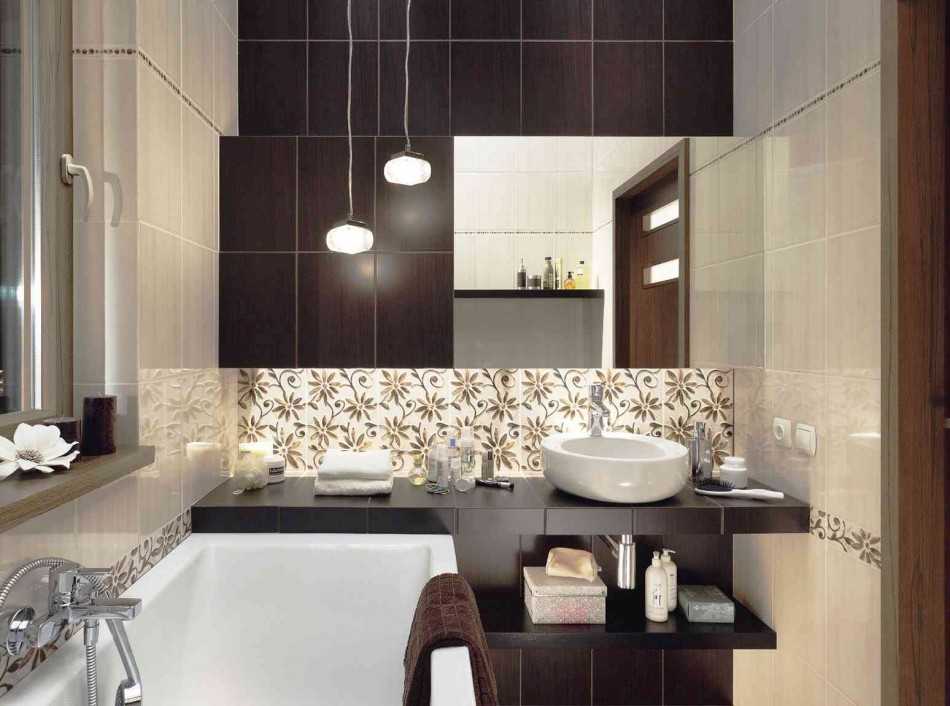 Керамическая плитка в прекрасном интерьере совмещенной ванной комнаты
