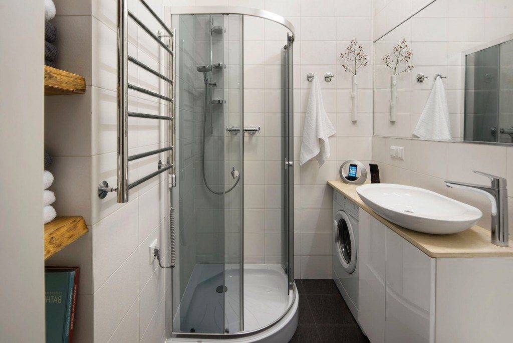 стиральная машина – здесь достаточно просто, для узкой модели можно найти место даже в самом небольшом санузле.