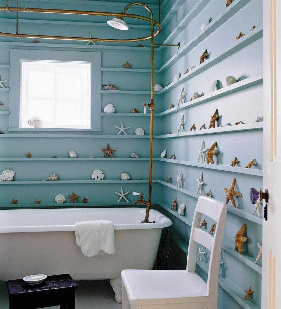 Полноценный дизайн состоит из аксессуаров, банных принадлежностей, которые размещают в соответствии с «правилами вытянутой руки».