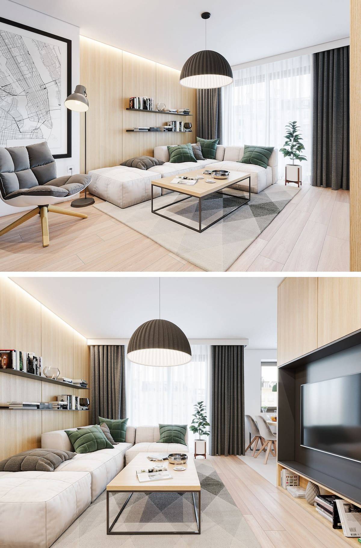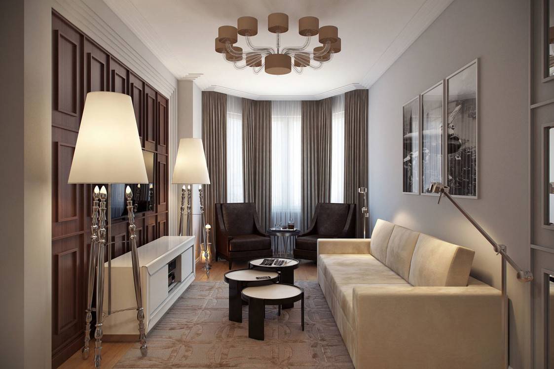 Оформление квартиры зависит от размера, высоты и формы комнаты. Рассмотрим особенности, которые учитывают.