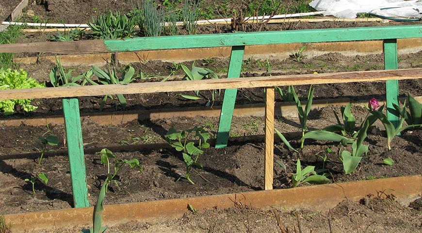 Деревянные опоры, которые можно использовать как каркас для пленки, или для подвязки овощных культур: фасоли, гороха, огурцов.