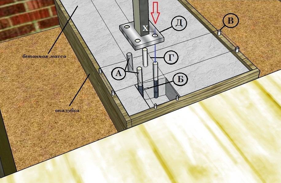 Технология устройства обоих вариантов фундамента под лестницу идентична технологии устройства столбчатого фундамента.