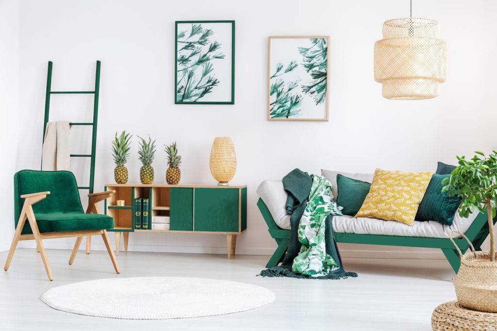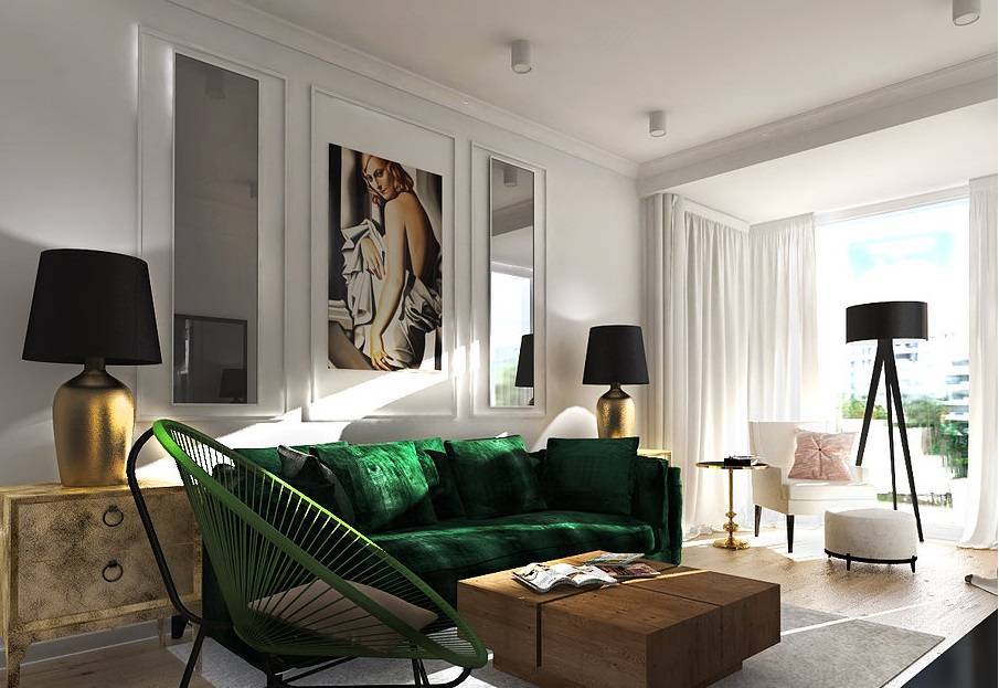 Изумруд мебель всегда будет отлично смотреться в комнате с белыми или пастельных стен
