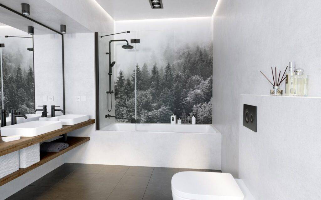 Узорный пол и оригинальные узоры на стенах придают интерьеру особый характер. Геометрические мотивы, расположенные в определенном ритме, добавляют глубины, а цветочные украшения на плитке создают приятную и романтическую атмосферу в интерьере. Альтернативой являются фотообои и принты на стекле, которые покрывают всю стену.
