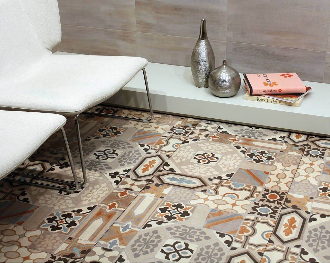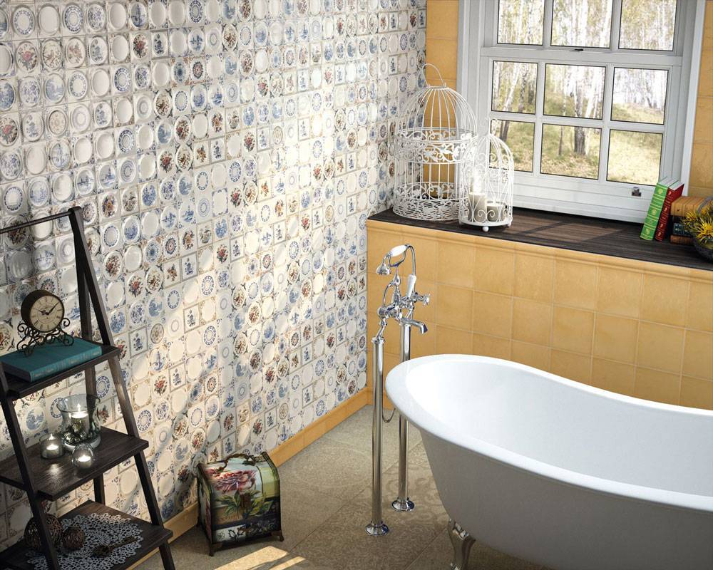 Кафель с «лоскутными» узорами актуально использовать для ванной комнаты в ретро или современных направления интерьера: