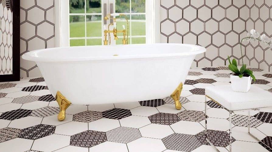 Настоящим украшением просторной ванной комнаты становится пол. Его можно использовать для создания основного акцента.