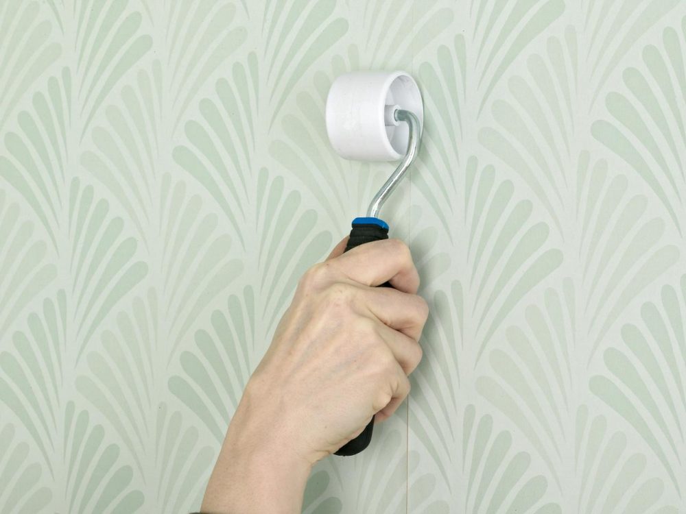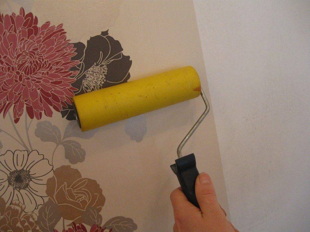 Для разравнивания виниловых обоев используйте валик или специальную щетку