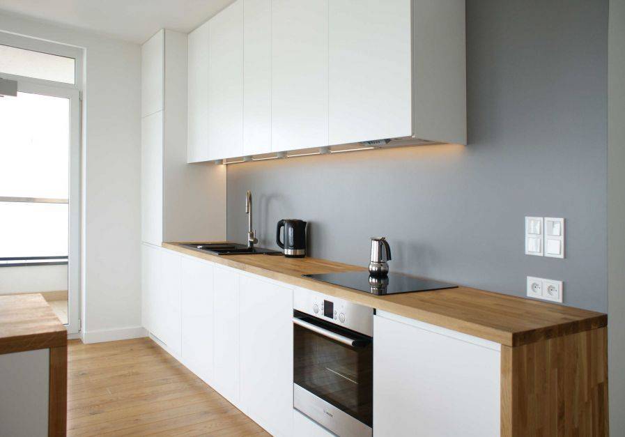 Они не должны быть слишком громоздкими и массивными, идеальный вариант — современный гарнитур в стиле «минимализм» со встроенной техникой.